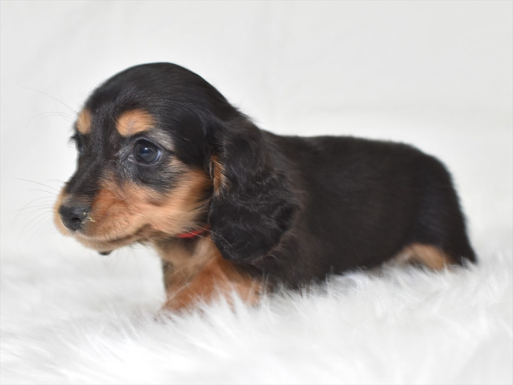 ブラックタン色の女の子で、赤リボンちゃん。